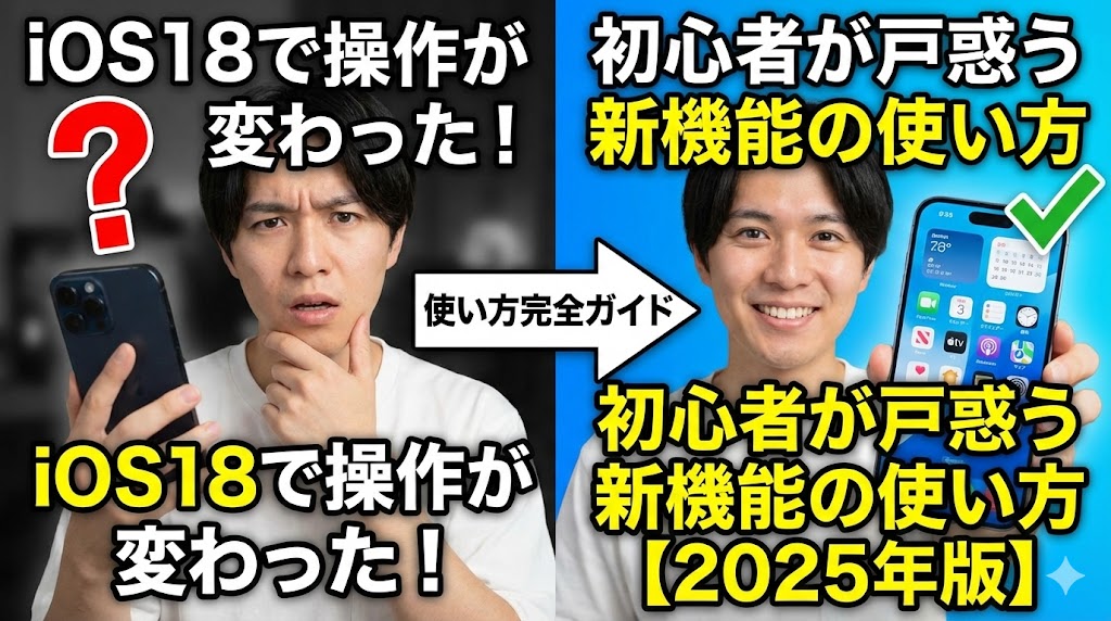 この記事では、iOS 18で変わった操作方法と、初心者の方が戸惑いやすいポイントを解説しました: