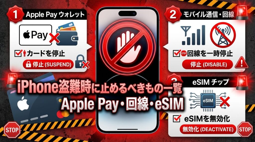 iPhone盗難時に止めるべきもの一覧|Apple Pay・回線・eSIM