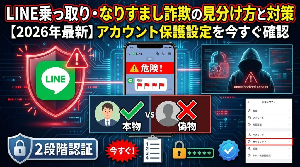 LINE乗っ取り・なりすまし詐欺の見分け方と対策【2026年最新】アカウント保護設定を今すぐ確認