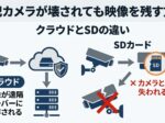 SDカード保存の弱点は、カメラ本体と一緒に失う可能性があることです。カメラが壊れたり、取り外されたり、盗難に遭ったりした場合、ローカル保存だけでは映像が残らないことがあります。