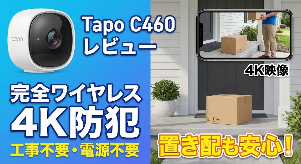 Tapo C460レビュー|工事不要・電源不要の4K防犯カメラで置き配も安心