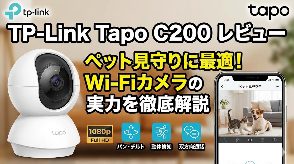 TP-Link Tapo C200は、フルHD画質・360度回転・夜間撮影・双方向音声・動作検知という充実した機能を2025年12月時点で約3,000〜5,000円で実現したネットワークカメラです。初心者でも10分で設定できる簡単さと、3年保証による安心感が特徴で、ペット見守り・赤ちゃんモニター・防犯カメラとして多目的に活用できます。