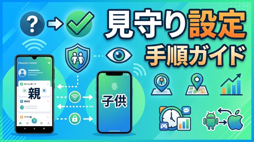 子どものスマホ見守り設定【2026年版】iPhone/Android完全ガイド 子どもに初めてスマホを持たせるとき、「位置情報だけ見られれば十分?」「時間制限やフィルタリングも必要?」と迷う家庭は多いはずです。実は、見守り設定は親子それぞれのOSの組み合わせで、できることとできないことがかなり変わります。 iPhoneとAndroidで見守り設定がどう違うか 親子でOSが違うときに、何ができて何が…