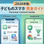 注:2026年3月時点のGoogle・Apple公式情報に基づいています。Family LinkはGoogleアカウント前提の仕組みであり、Apple標準機能だけでAndroid端末を直接見守れるわけではありません。