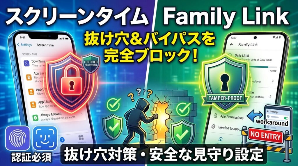 注:この記事は、抜け道そのものを詳しく紹介する内容ではありません。保護者が先回りして塞ぐべき設定と、防止策中心の運用方法に絞ってまとめています。なお、内容は2026年3月時点で確認できるApple / Googleの公式情報をもとに整理しています。